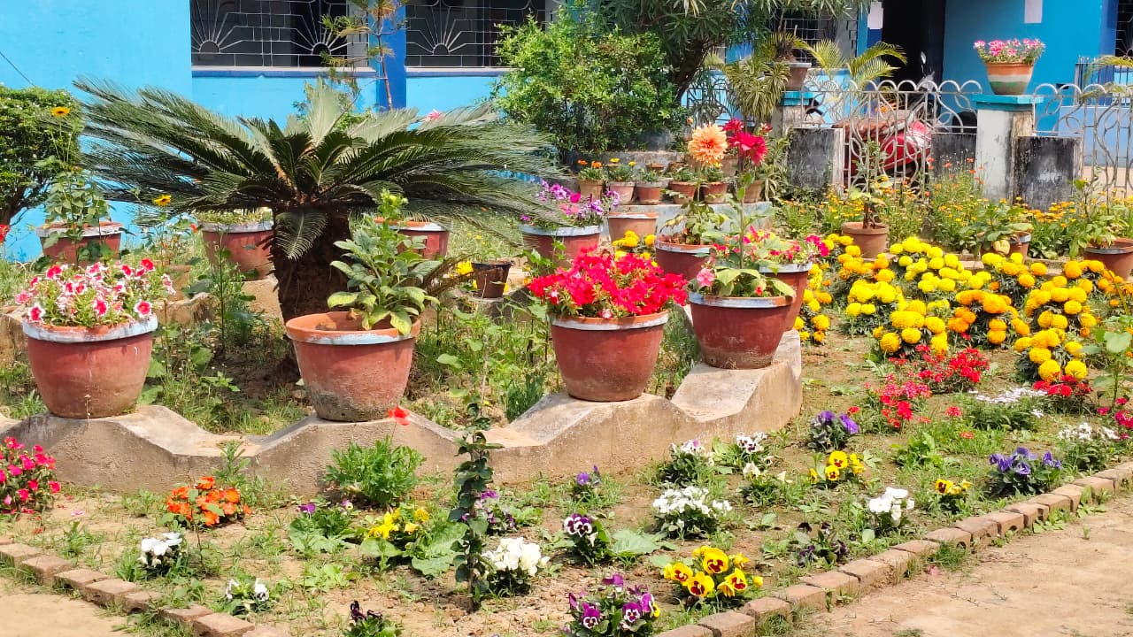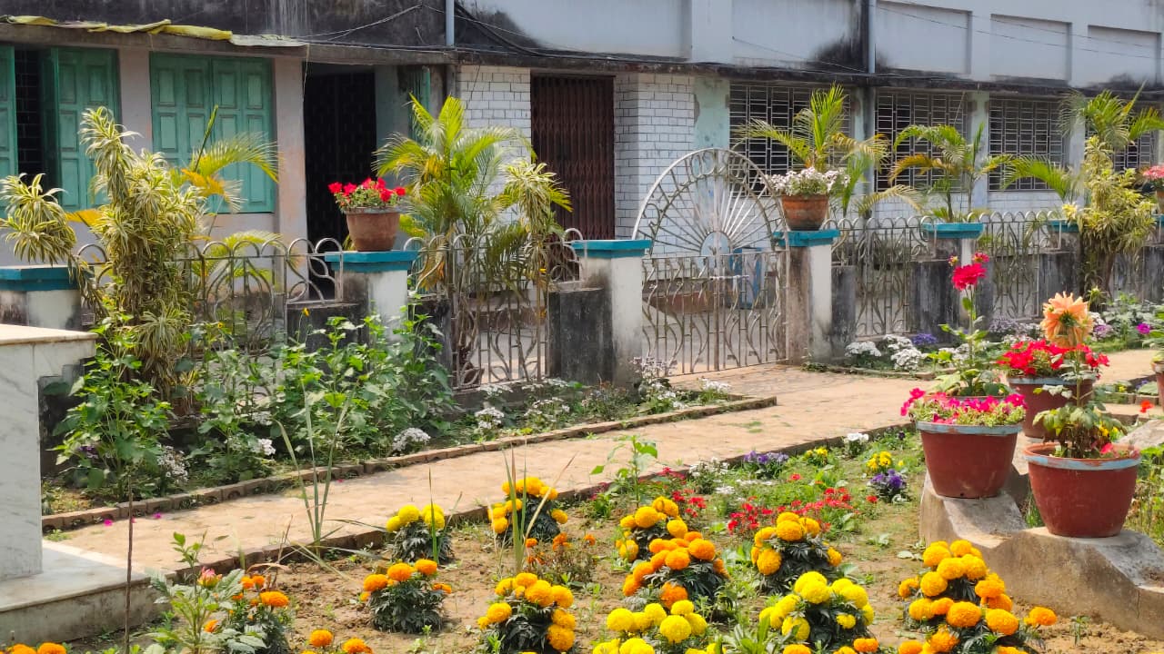 The Flower Garden of Santipur College is one of the most vibrant and inviting spaces on the campus. Throughout the year, seasonal flowers bloom in a variety of colors, filling the garden with beauty and fragrance. With every change of season, the garden takes on a new charm, offering fresh delight to students, teachers, and visitors alike.