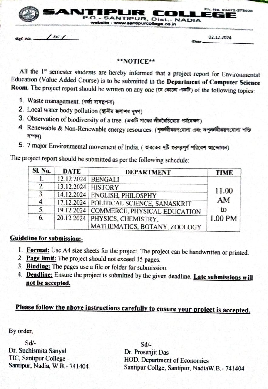 | 1 td > | 04.12.2025 | New UG 1st Semester Environmental Education (VAC) Project Submission Notice | View/Download |
