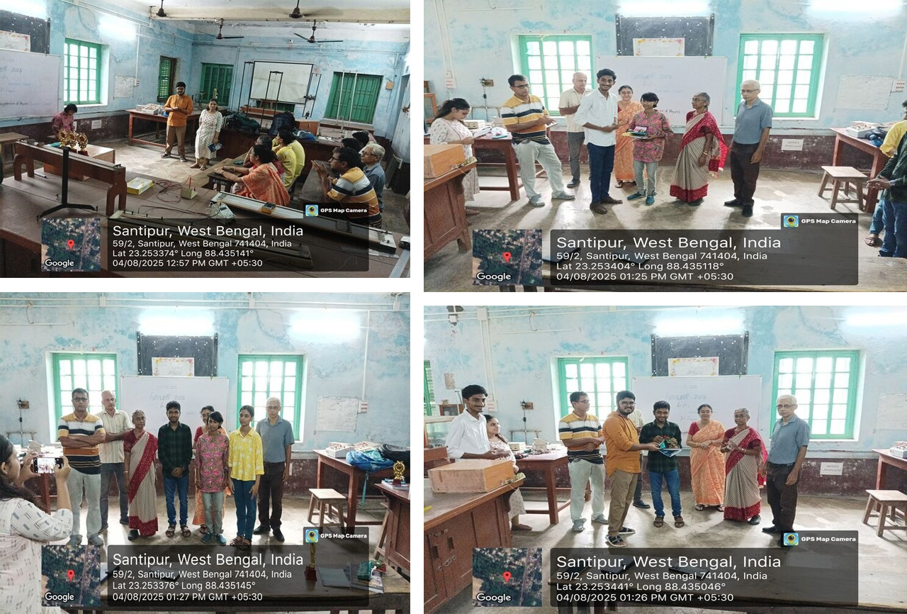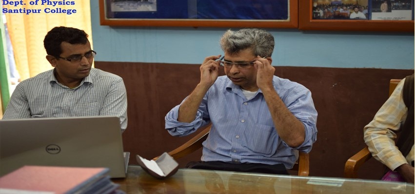 The Physics Department of Santipur College has a dedicated team of 8 enthusiastic professors who are eager to teach and maintain a student-friendly atmosphere. The department ensures timely completion of the syllabus, provides class notes, and adopts both traditional lectures and ICT-based teaching methods. Special attention is given to lagging students through personalized guidance. The department boasts separate, spacious laboratories for Electronics, Optics, Computer, and General Physics, offering hands-on learning experiences. Regular seminars, wall magazines, and student-centered programs are organized to encourage academic engagement and creativity. The department consistently produces good results, with many alumni successfully pursuing M.Sc., qualifying competitive exams like GATE, NET, and JAM, and securing positions in teaching, research, and professional jobs.