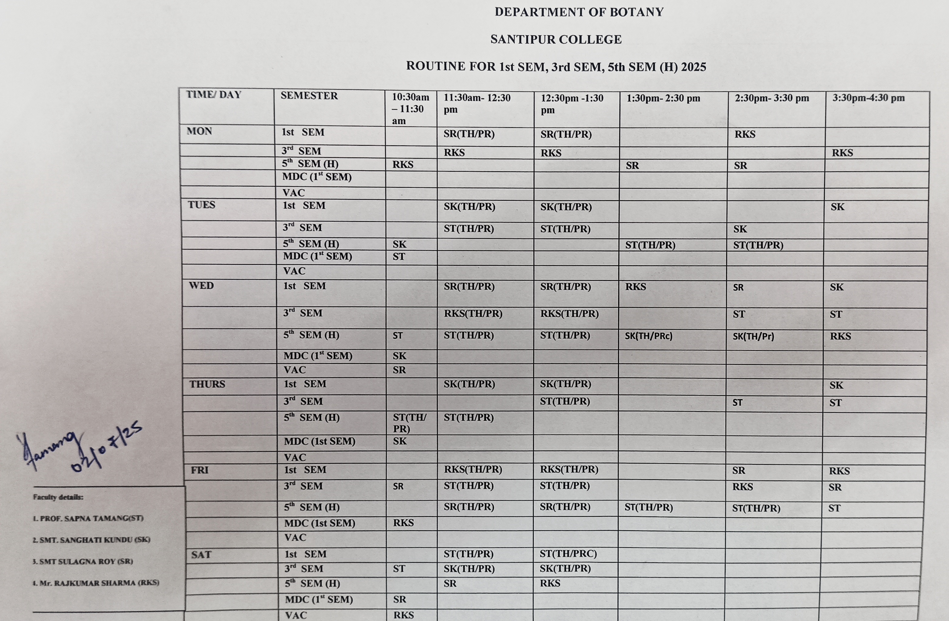 | 3 td > | 14.10.2025 | Taxonomic hierarchy | Smt. Sapna Tamang | Semester 5 | View/Download |
