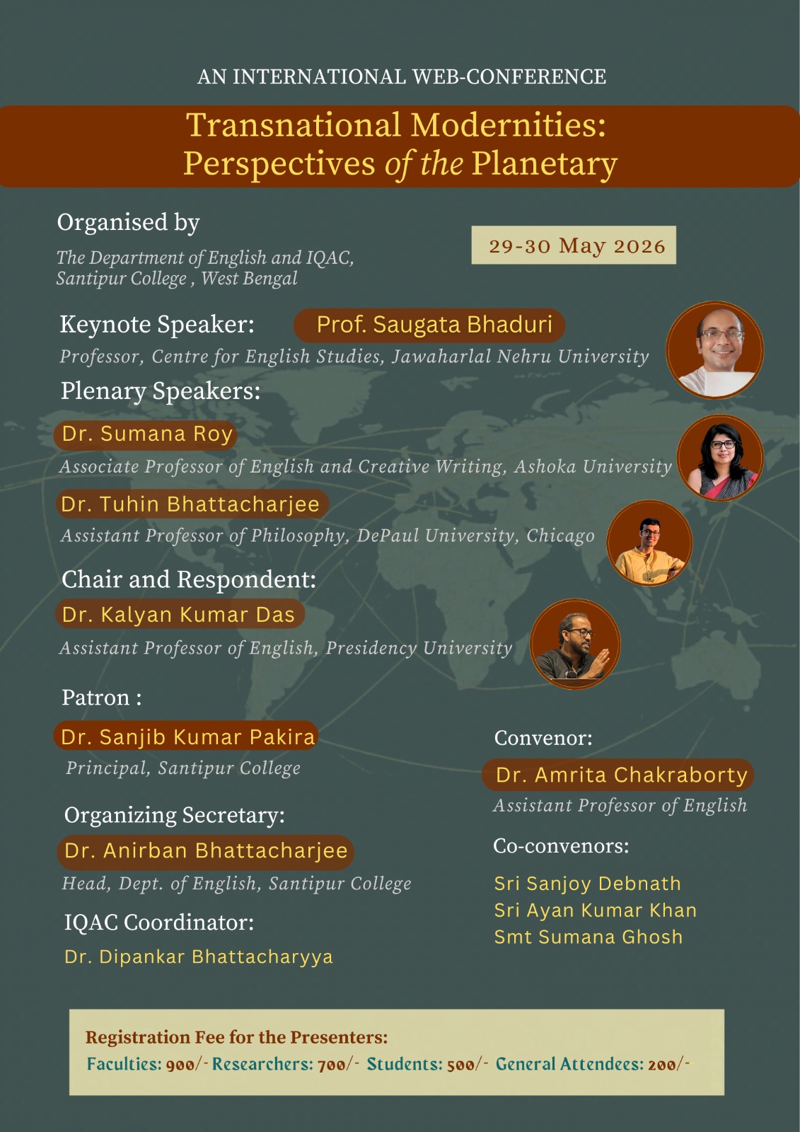 | 1 td > | 27.04.2026 | International Webinar on Transnational Modernities, Organised by the English Department and IQAC, Santipur College on 29- 30 May 2026. Calling for Papers | View/Download |