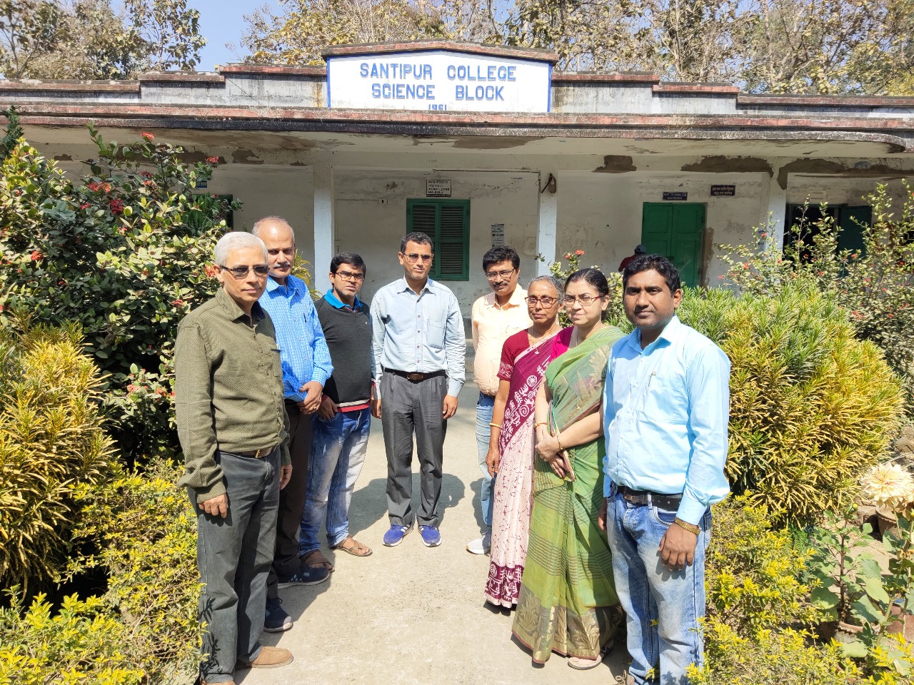 The Physics Department of Santipur College has a dedicated team of 8 enthusiastic professors who are eager to teach and maintain a student-friendly atmosphere. The department ensures timely completion of the syllabus, provides class notes, and adopts both traditional lectures and ICT-based teaching methods. Special attention is given to lagging students through personalized guidance. The department boasts separate, spacious laboratories for Electronics, Optics, Computer, and General Physics, offering hands-on learning experiences. Regular seminars, wall magazines, and student-centered programs are organized to encourage academic engagement and creativity. The department consistently produces good results, with many alumni successfully pursuing M.Sc., qualifying competitive exams like GATE, NET, and JAM, and securing positions in teaching, research, and professional jobs.
