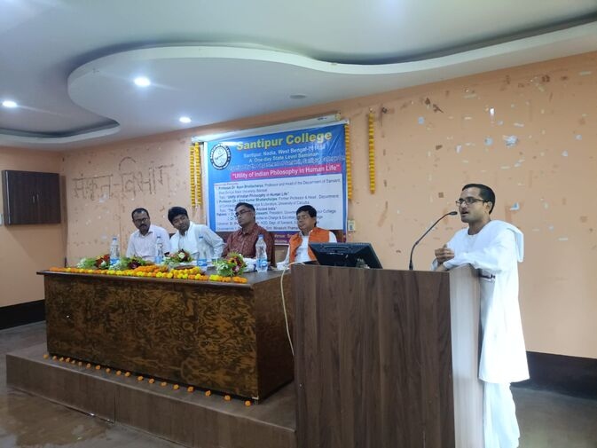 One day State Level Seminar | Dr. Ayan Bhattacharya, Head of the Department of Sanskrit, West Bengal State University, Barasat . | Topic: Utility of Indian Philosophy in Human Life. Jointly organized by the Department of Sanskrit in association with IQAC, Santipur College. A Report : View |