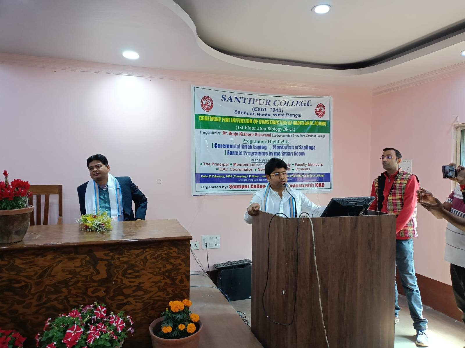 | 12.02.2026 | Ceremony for initiation of construction of Additional Rooms (1st Floor) atop Biology Block | President, Governing Body, Principal, Chairman, Santipur Municipality and others | Planting of sapling, Brick laying, Felicitation, Address by Principal, Distribution of Cheques to three ex- employees, Address by the honourable President View1 View2 |