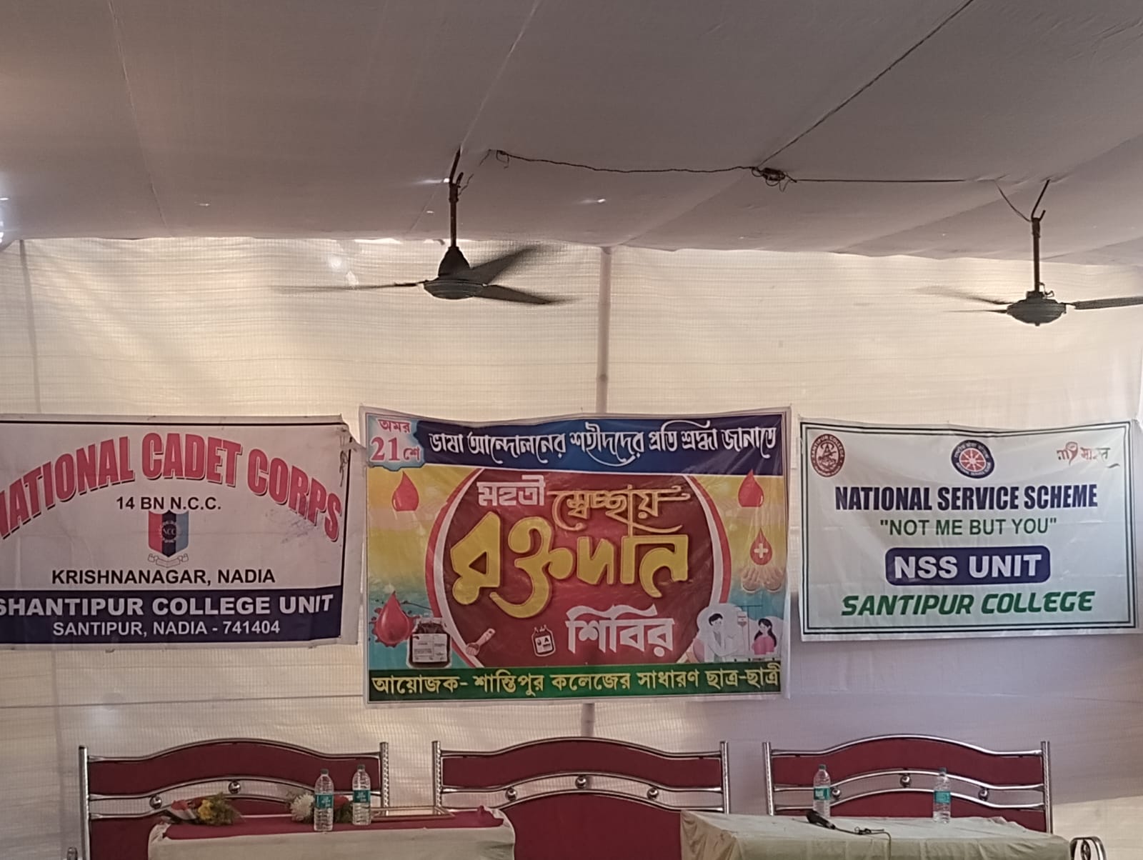 | 21.02.2026 | Blood donation Camp organised by students | Students, Staff | Programme was attended by President, Principal, Chairman of Santipur Municipality, Local Councilors and other distinguished guests View |