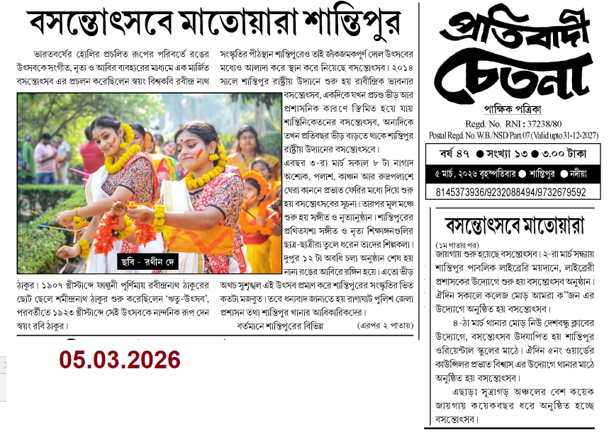 | 4 td > | 05.03.2026 | Basanta Utsov Celebration in Santipur College | Pratibadi Chetana | View/Download |